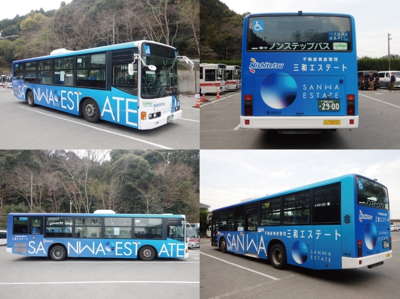 このたび、三和エステートのラッピングバスが新たなデザインとなり、運行を開始いたしました!